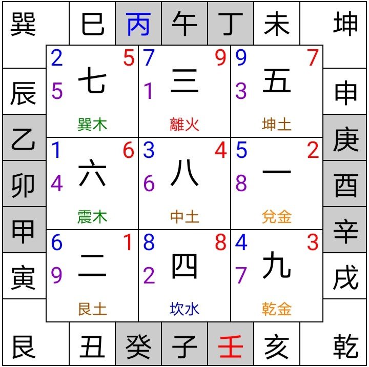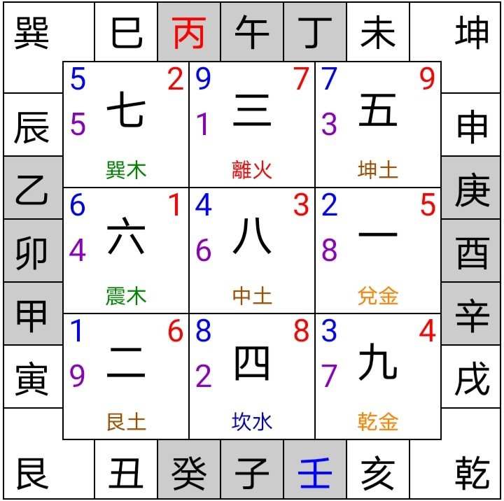 7赤兑金;8白艮土;9紫离火;