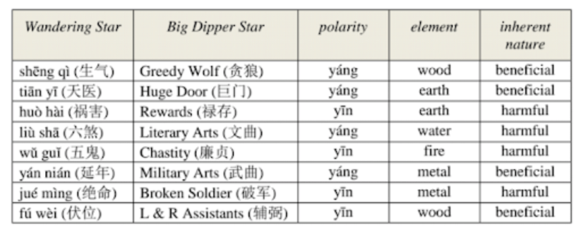8 Mansion Wandering Stars Reference Table